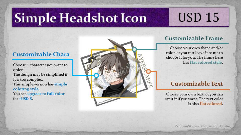 Commission artworks will be used as my portfolios and posted on my social media. If you have any request regarding this matter (e.g. artwork will be used as gift, etc.) please inform me beforehand about when I am allowed to post the artwork and I will postpone to share it until the said date for free. There will be additional fee of USD 6 if you choose to keep it private permanently (use can select it on the add-ons options).