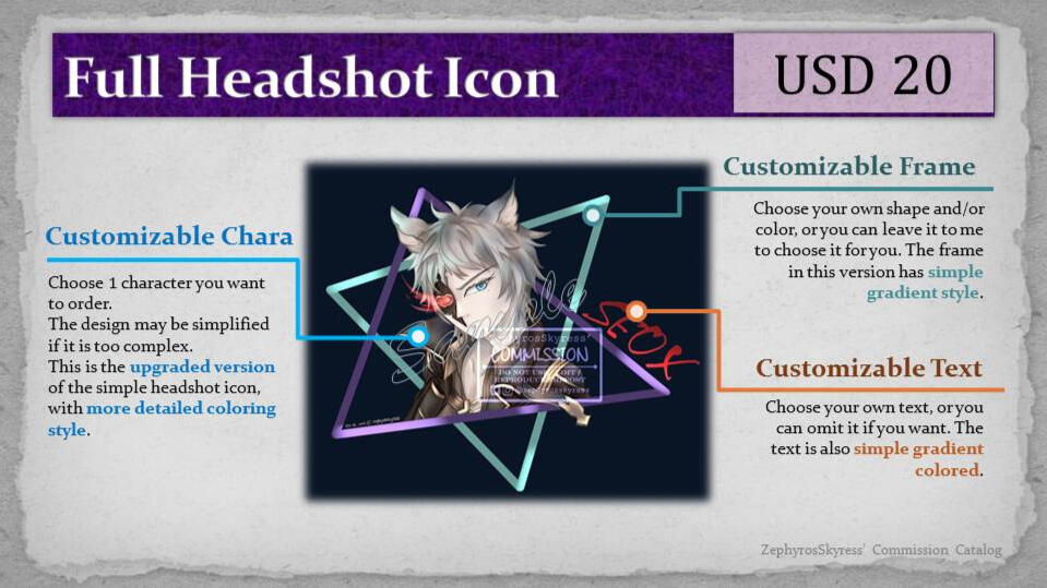 This is not a first-come-first-serve basis commission. I will review the order first before I accept it. I do: OC (with image references only), fanart, kemonomimi. I don't do: NSFW, mecha, gore, furry, elderly. I have the right to decline a commission for any reasons.